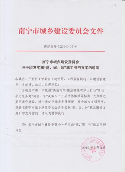 下一篇:《關于印發南寧市城鄉建設委員會2014年打擊工地亂象暨揚塵污染治理工作要點的通知》