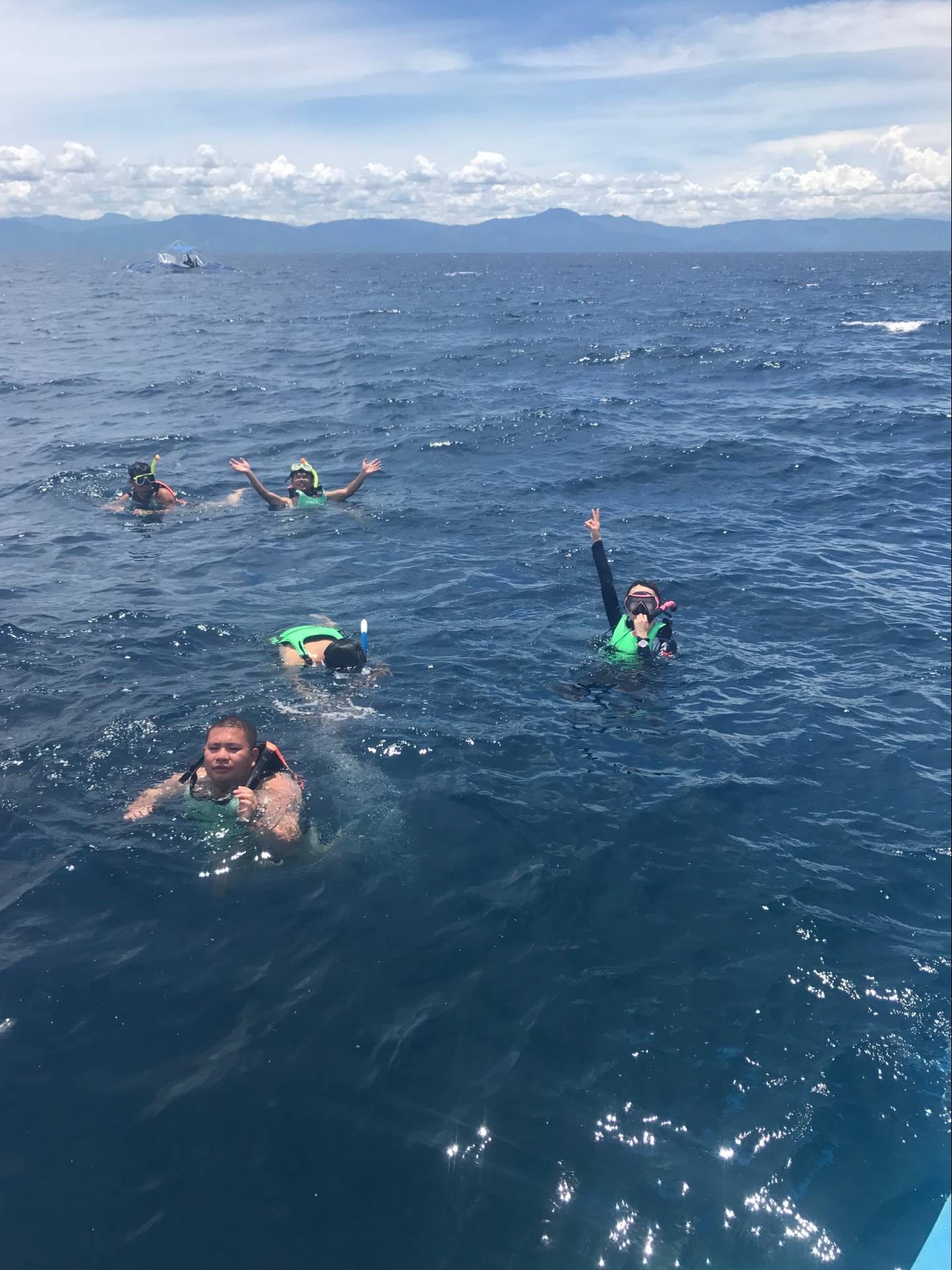 在接下來的這幾天時間里,大家游玩了當地特色的景點,在圣得瓦利魚類保護區浮潛,穿梭于五彩的珊瑚礁、海星、海膽之間,與熱帶魚一同悠游于大海中,成群結隊魚圍繞著你,體驗海底世界的樂趣。上原生態離島漁村,享用新鮮美味的菲式料理。參觀圣嬰大教堂、麥哲倫十字架、圣佩特羅堡,感受不一樣的名勝古跡和當地的民俗文化。最激動人心的是,在奧斯洛布隊員們看到鯨鯊,興奮難奈,驚叫聲此起彼伏。