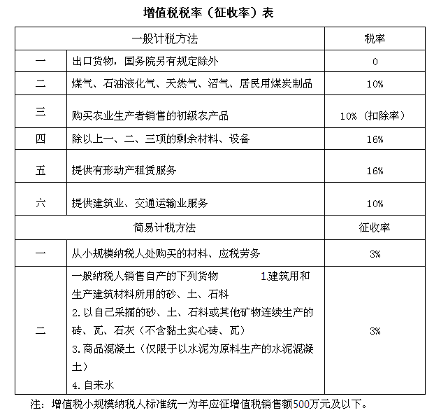 一、納稅人發(fā)生增值稅應(yīng)稅銷售行為或者進口貨物,原適用17%和11%稅率的,稅率分別調(diào)整為16%、10%。