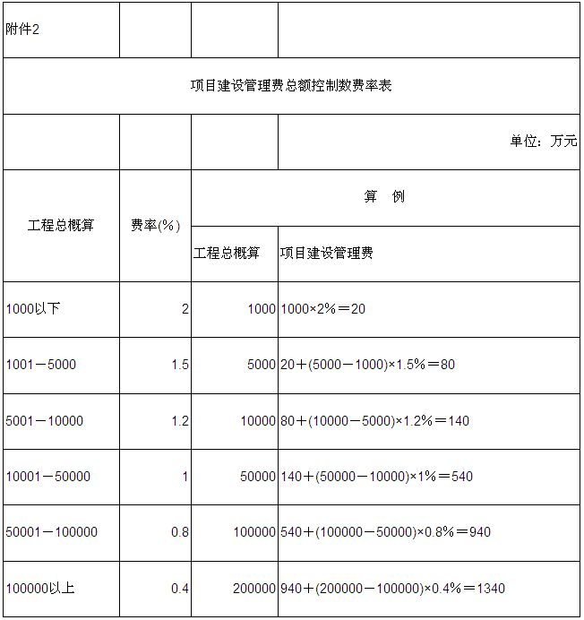 2.項目建設(shè)管理費總額控制數(shù)費率表