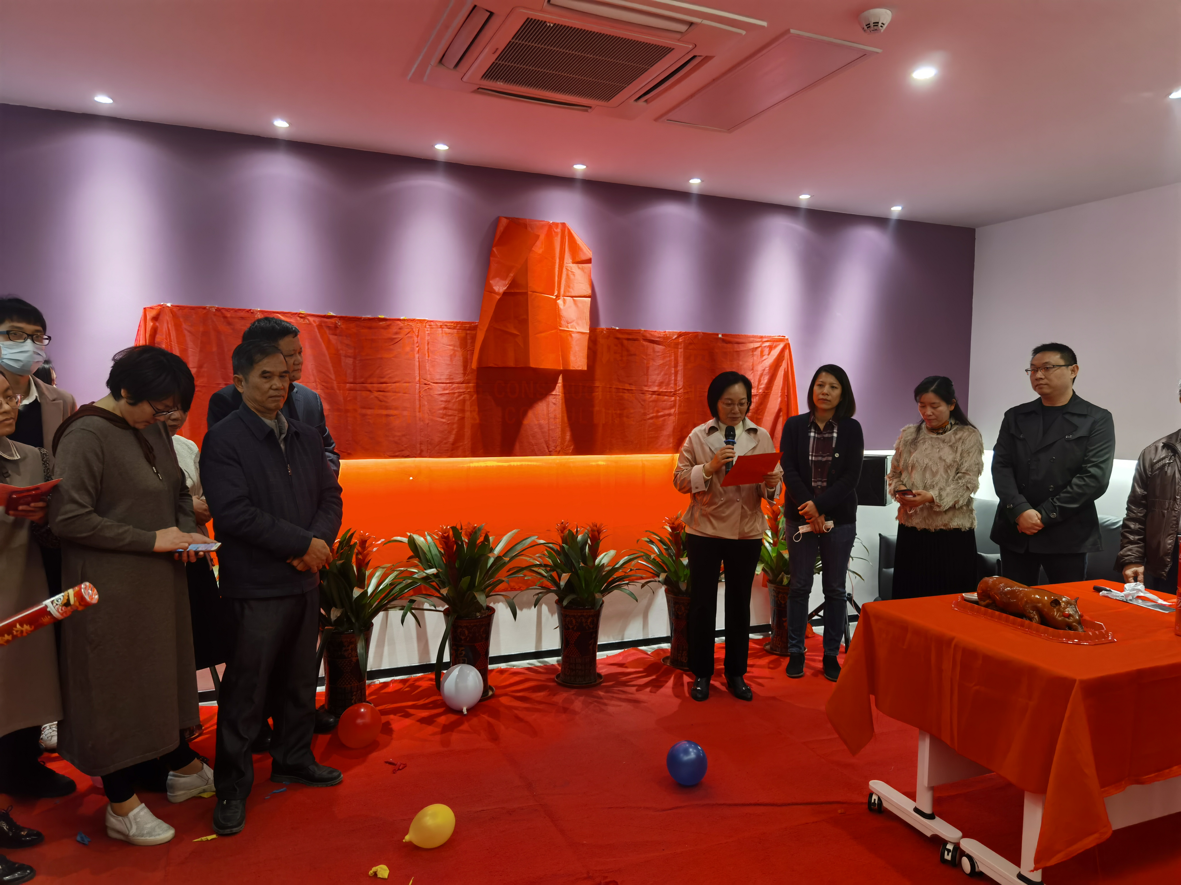 10時28分,公司董事長賀麗娜、副總經(jīng)理劉瑾、技術(shù)總工程師李經(jīng)崇、總經(jīng)理助理丁昭、總經(jīng)理助理龍海湘、造價部部長湯昆儒共同為儀式揭幕。