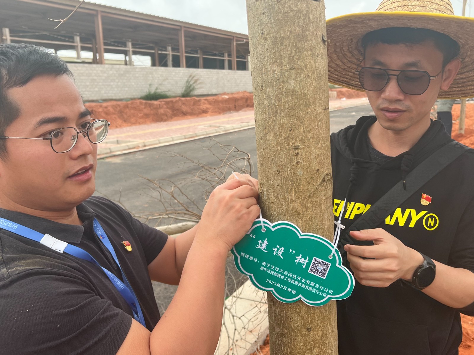 在活動現場,50余名黨員和積極分子、青年志愿者一道齊心協力,栽下了友誼之樹。大家干勁十足,揮鍬鏟土,扶樹培苗,澆水灌溉,一片忙碌景象。經過一陣辛勤勞動,雖然每個人雙手、鞋子都沾滿了泥土,但看到一棵棵新植的小葉欖在南寧東部新城六景工業園區五個產城項目緯十一路綠化帶上昂然挺立,大家充滿了成就感和自豪感。
